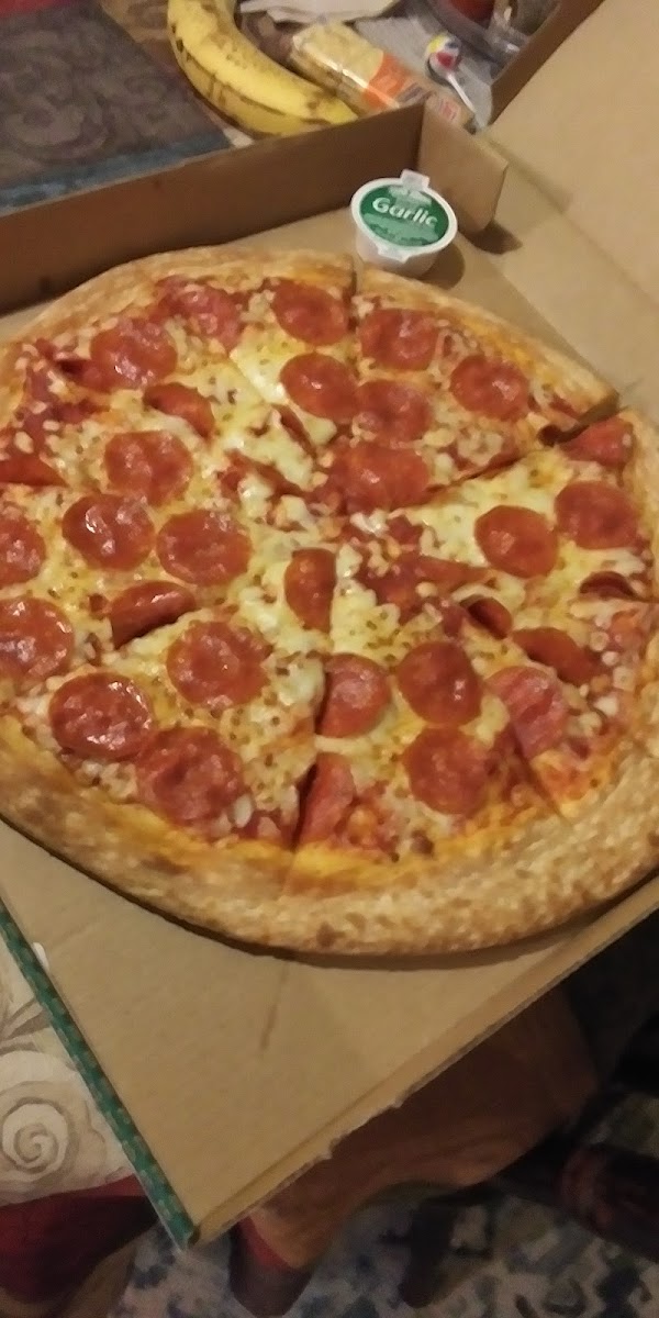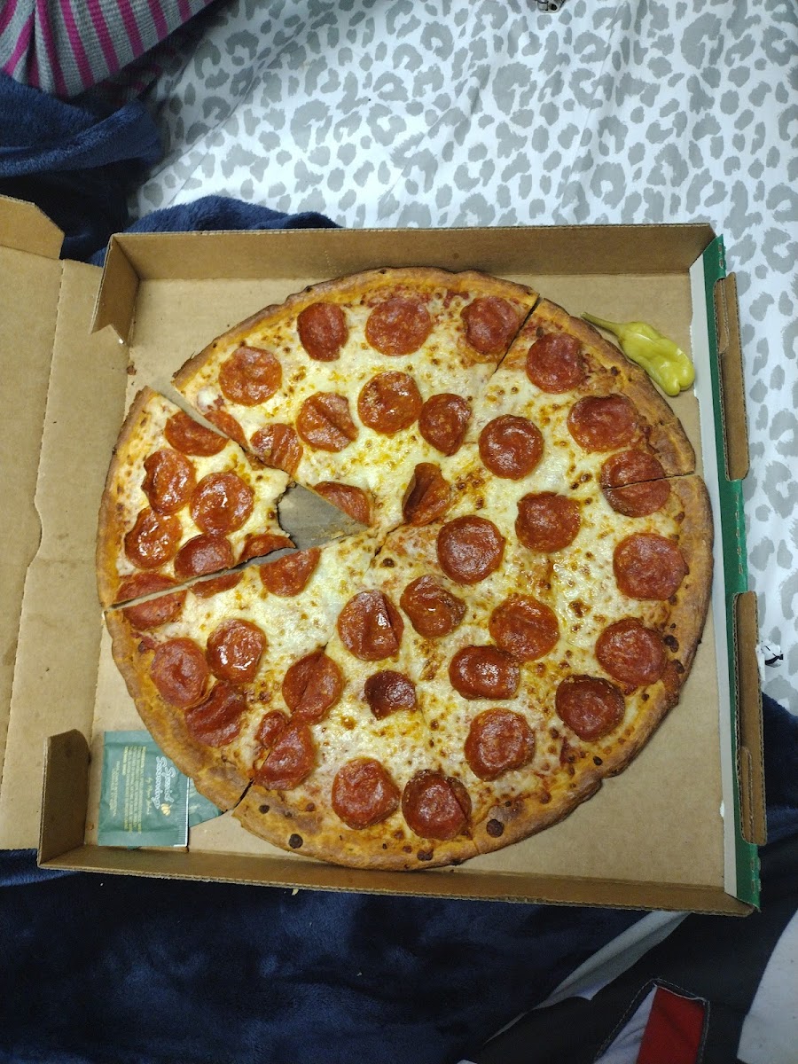 Pepperoni pizza - a timeless classic, loaded with pepperoni and melted cheese, a safe go-to when you just want comfort food.
